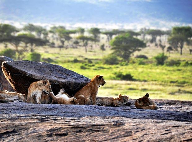 Find them readying for the hunt at dusk or dawn, feasting on their prey, playing with their siblings, but mostly – sleeping in the shade of an acacia tree or on top of one of the kopjes, small inselberge scattered across the landscapes.